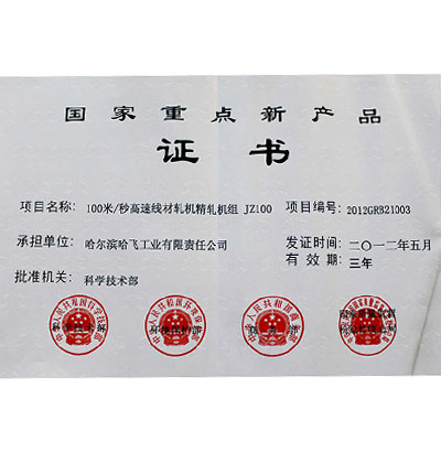 國家重點(diǎn)新產(chǎn)品證書